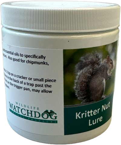 Kritter Nut Lure is a rich mix of nut oils, meats (NO Peanuts) & seeds that squirrels find simply irresistible. Like all of the "Premium Grade" bait products, Kritter Nut Lure is spiked with an anti-drying agent to increase the bait's effectiveness. Kritter Nut is proven effective with chipmunk, gray, red, & flying squirrels. For a change-up bait, give it a try on Norway Rats & mice. You'll be pleasantly surprised! This is a great rodent bait! An effective squirrel and rodent bait that attracts nuisance animals to traps. Works well with the Easy Set Tube Trap for squirrels. Food grade ingredients, no chemicals.